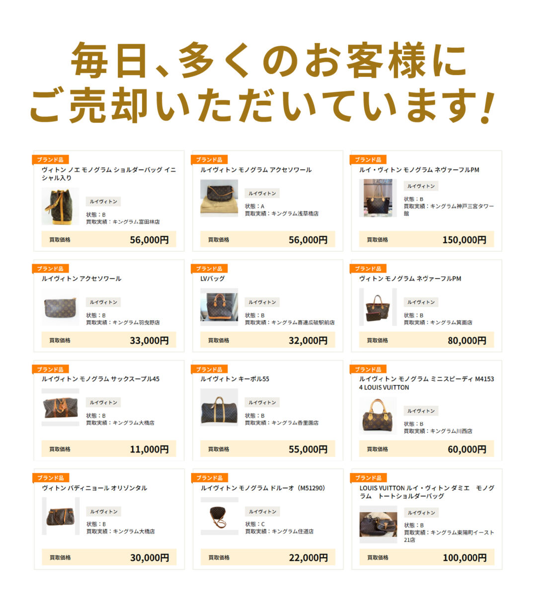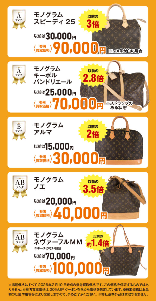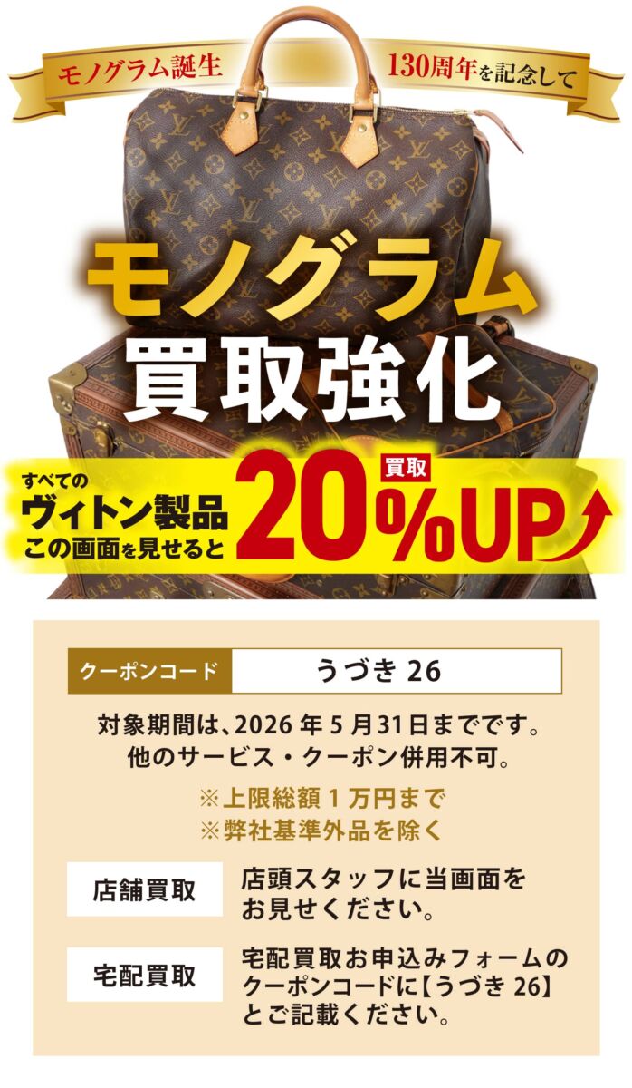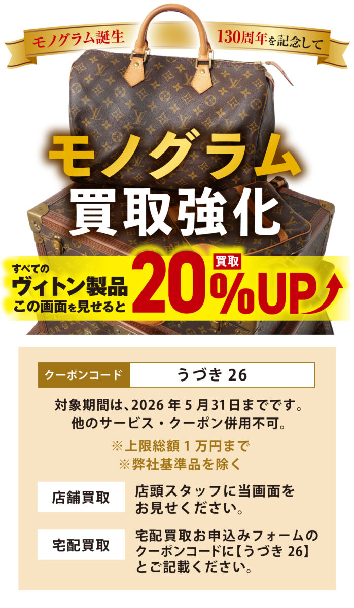 4・5月限定:モノグラム買取強化!ヴィトン製品20%UPキャンペーン